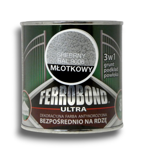 Farba antykorozyjna na rdzę Ferrobond Ultra 0,25L RAL9006 SREBRNY młotkowy