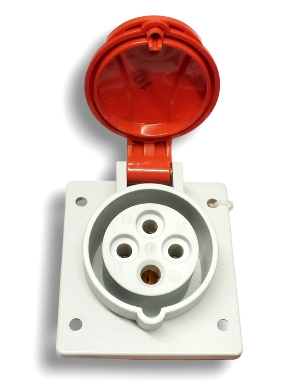 Solidne gniazdo przemysłowe CEE 16A 4P IP54, idealne do rozdzielnic, maszyn i instalacji trójfazowych bez przewodu neutralnego.